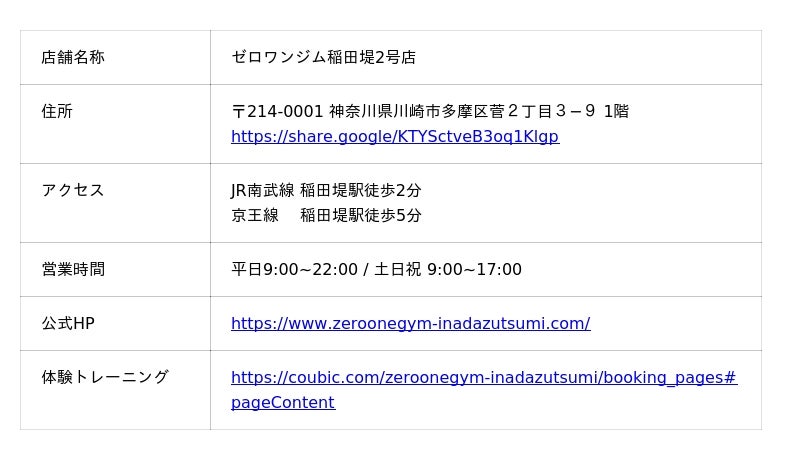 株式会社ゼロワン(本社:神奈川県川崎市多摩区、代表取締役:山口翔矢)は、セミパーソナルトレーニングジム『ZERO ONE GYM(ゼロワンジム)稲田堤2号店』をオープンいたします。