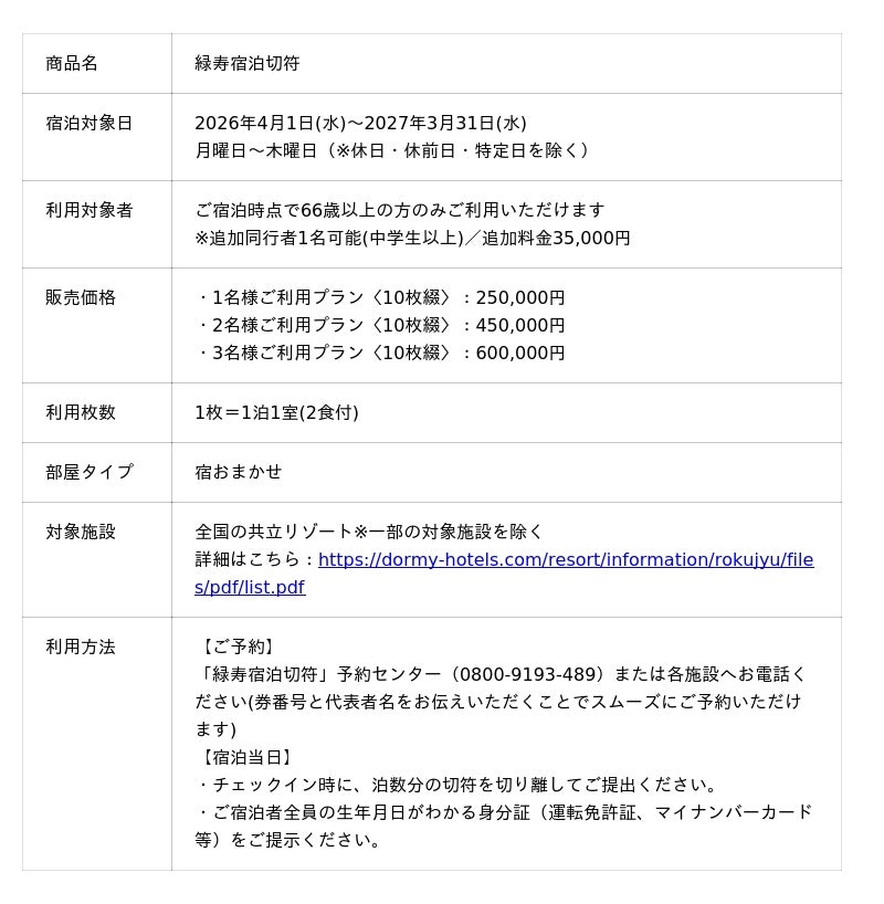 緑寿宿泊切符の詳細はこちら:https://dormy-hotels.com/resort/information/rokujyu/