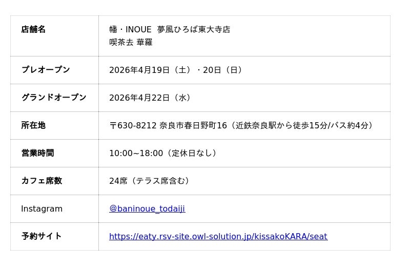 奈良のライフスタイルブランド「BAN INOUE」を展開する有限会社 井上企画・幡(本社:奈良県奈良市、代表取締役:林田千華)は、東大寺門前の夢風ひろば内にある店舗を装い新たに、2026年4月22日(水)グランドオープンいたします。