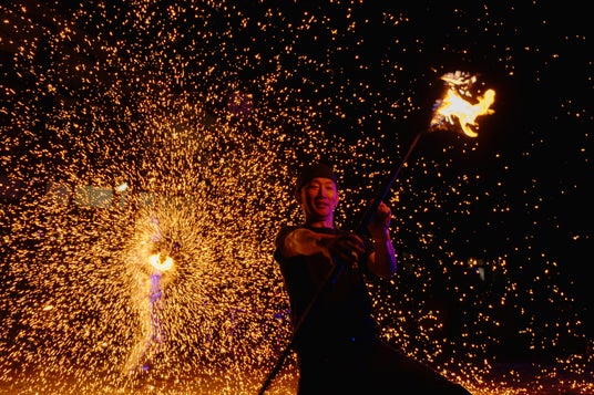 LEDやレーザーなどの光演出と、伝統的なファイヤーパフォーマンスを融合させた