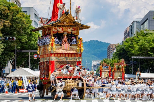 千年以上の歴史を持ち、7月1日(吉符入)から31日(疫神社夏越祭)まで、1か月にわたって多彩な祭事が行われる八坂神社の祭礼。なかでも、祭のハイライトは前祭7月17日と後祭7月24日に行われる八坂神社の神輿渡御と34基の山鉾巡行で夏の風物詩となっています。