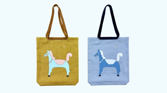 スウェーデン語で「平和」を意味する「fred(フレッド)」と名付けられた、皆川氏描き下ろしのダーラナホースがプリントされた本展限定の特製バッグがセットになったチケットです。刺繍で施された蝶々のマークがワンポイントになっています。