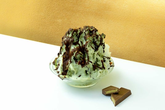 大流行したドバイチョコレートをかき氷で完全再現。濃厚ピスタチオとビターなチョコレートが相性抜群。