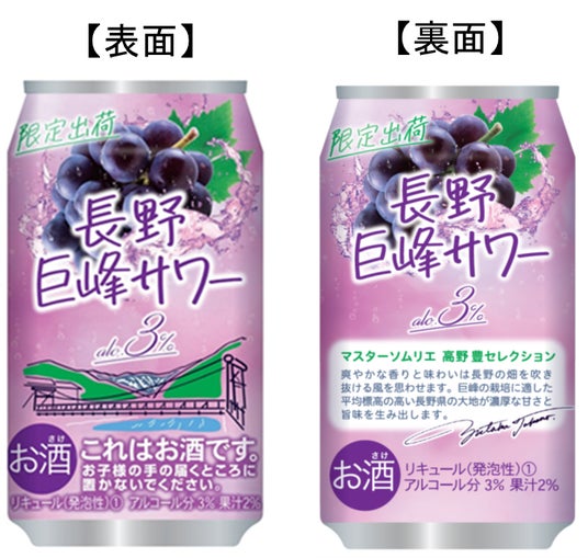 このたび発売する「長野巨峰サワー」は、巨峰生産量日本一を誇る長野県産にこだわり、マスターソムリエ高野豊氏の監修により実現した数量限定商品です。人口甘味料は使用せず、自然な甘みを持つブドウ果汁の味わいを生かすため、低アルコール3%に仕上げています。また、缶には上高地河童橋と北アルプスの風景がデザインされ、長野県の豊かな自然やご当地感を表現しています。