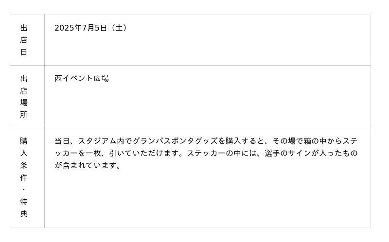 ※販売時間については、後日、グランパスポンタ公式X(@nge_ponta)にてご案内予定です