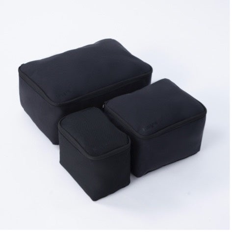 大・中・小の 3 サイズで、スーツケースの⽚開き構造にぴったり収まる専用ポーチ。収納効率を高め、旅の荷造りをスマートにします。