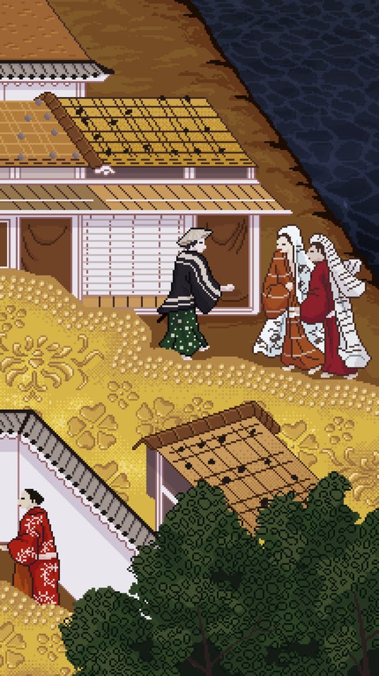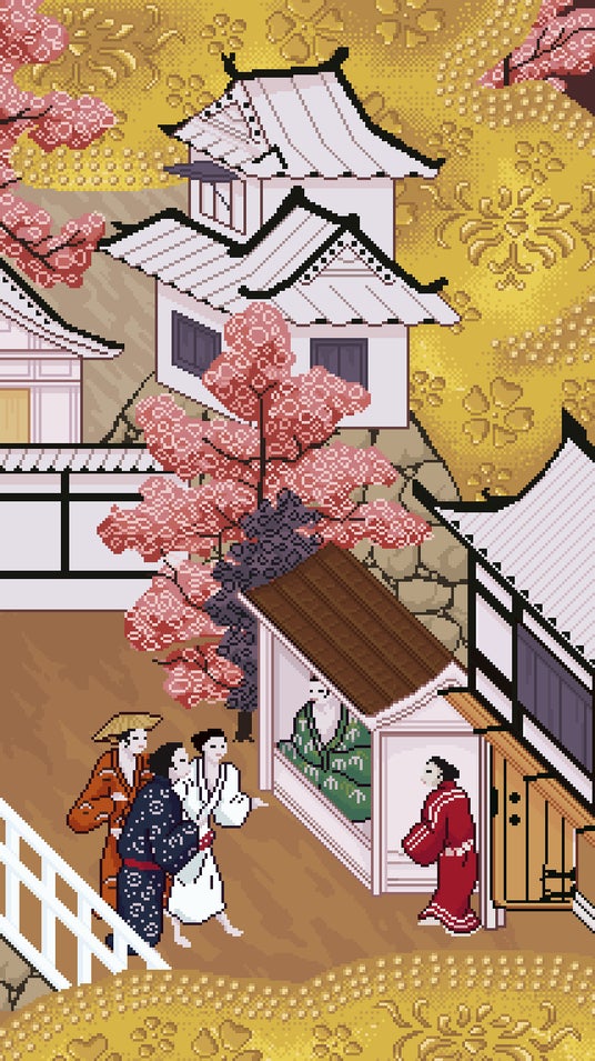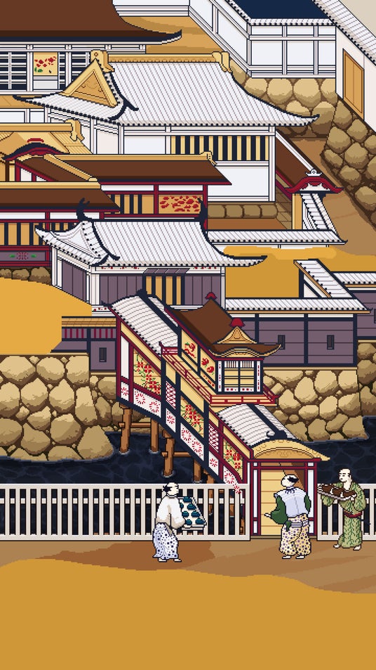 『豊⾂期大坂図屏風』に描かれている主なモチーフを、インタラクティブなピクセルアートで表現した
