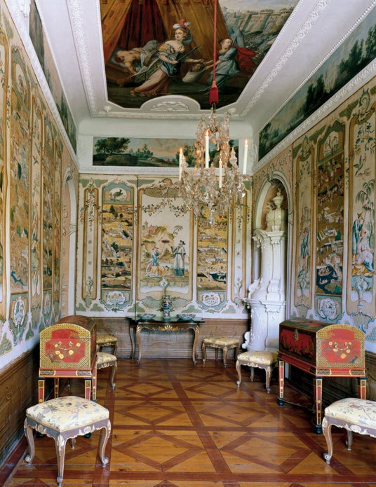 エッゲンベルク宮殿の「日本の間」。屏風が壁紙にはめ込まれている。(c) Graz, Universalmuseum Joanneum / Angelo Kaunat