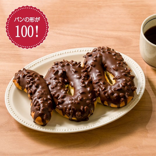 しっとりとした生地にアーモンドをまぶして焼き上げチョコレートをコーティングしました「100」をかたどった今年ならではのパンです。