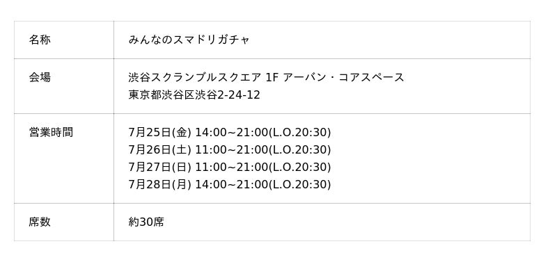 期間限定イベント「みんなのスマドリガチャ」7月25日から28日まで渋谷スクランブルスクエアで開催