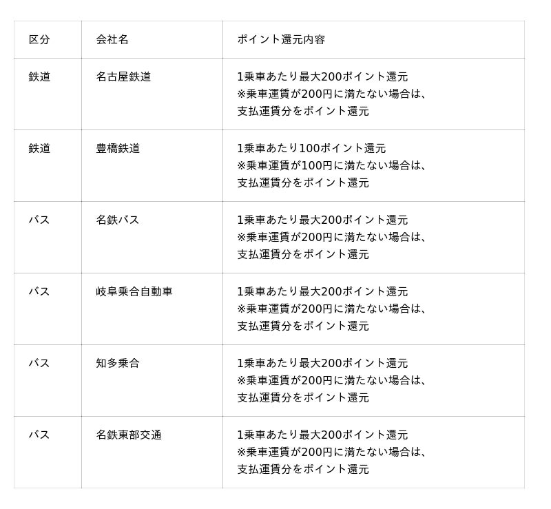 名鉄バスは、イオン木曽川線、稲沢中央線を除く一般路線が対象