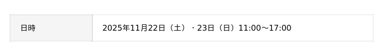 ※展示・イベントの時間は変更する場合があります。最新情報はイベントウェブサイトでご確認ください。