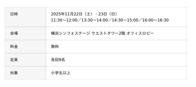 イベントウェブサイト https://retailing.jp.yamaha.com/shop/yokohama-minatomirai/event/detail?id=7659