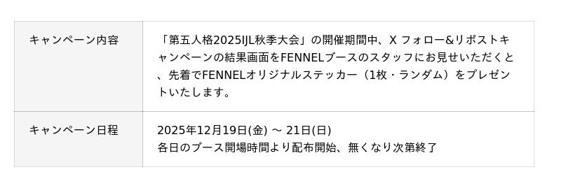 【2】 FENNELブースでオリジナルステッカーがもらえるキャンペーン