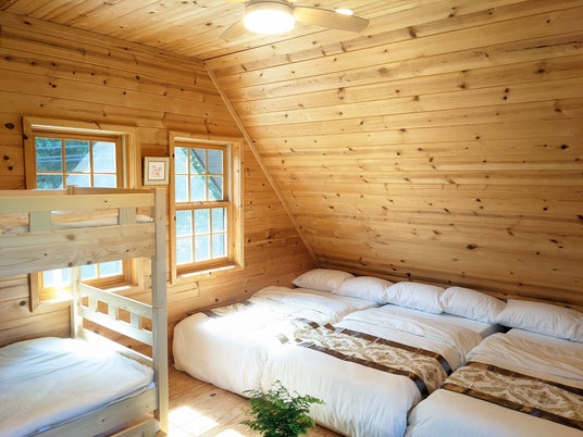 1日1組限定の一棟貸しのため、三密を避け安心して休暇をお過ごし頂けます。ベッドルームにはベッド4台と2段ベッド1台を備え、6人までの宿泊が可能です。施設内ではキッチン、ランドリー、薪ストーブ、専用駐車場を無料で利用でき、別荘のように長期滞在もできます。木の温もりを感じるアウトドアモダンなインテリアで、家族や友人とともに、長引くコロナ禍の煩さや都会の喧騒を忘れ、森林の中で心安らぐステイが叶います。