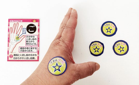 「ツボココはココ!」シールを使って、ツボの場所も簡単に覚えられます。