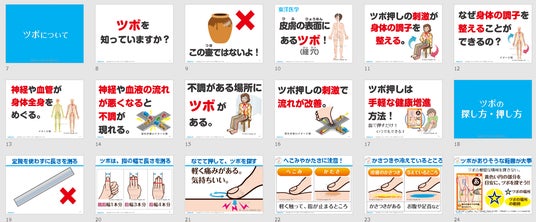 ツボの基本から症状別のツボ探しまで、ゲーム感覚で楽しく学べます。