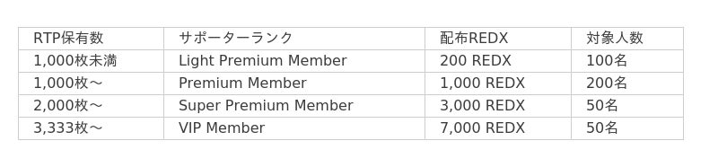 RTP保有者向けREDXエアドロップの詳細