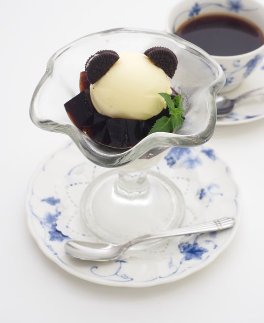 コーヒーゼリーとミルクゼリーでパンダをイメージしました。