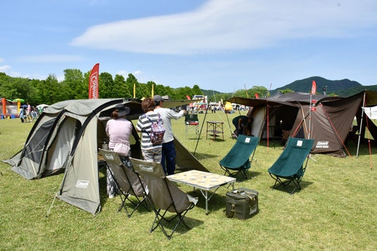 テントやキャンプグッズなどのアウトドア用品の展示・販売をはじめ、カヤックやツリーイングなど多彩なアクティビティ、親子で楽しめるワークショップ、地元の食材を使用したグルメを提供するキッチンカーなど、合計70店舗以上が出展予定となっています。