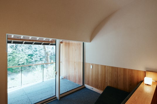 柔らかい繭のような白いボールト天井のある客室は、旅人の心が落ち着き安心して帰れる居場所