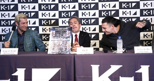 サッタリは「みなさん、今日は。K-1に戻ってきてタイトルマッチができると思っていましたが、こうして早めにチャンスが巡ってきて嬉しいです。相手も凄い選手なので、楽しみにしてください。チャンピオンになります」と興奮気味に挨拶した。
