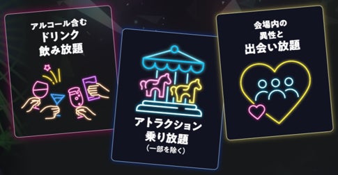 「アトラクション乗り放題」「アルコール含むドリンク飲み放題」「出会い放題」