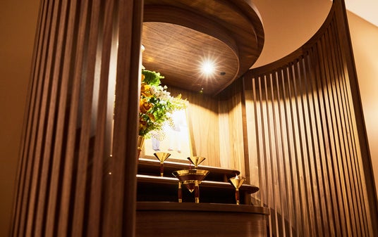 高級インテリアに溶け込みながら、仏壇としての品格と存在感を湛えています。