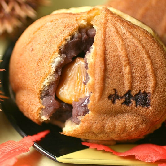 丸ごとの有機栗2個を小倉あんや栗あんなどの5種類の餡で包み、米粉を加えた特製生地で焼きあげました。