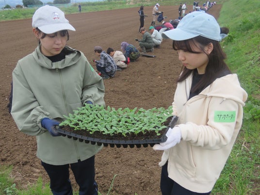 山梨県北杜市(市長:大柴邦彦)と北杜市明野サンフラワーフェス実行委員会(会長:秋山俊和)は、7月19日(土)に開幕する首都圏最大級のひまわりイベント「北杜市明野サンフラワーフェス2025」に向け、初の市民参加型「サンフェスサポーター」制度を導入しました。この新たな試みとして、去る5月24日(土)に約20名のサポーターを含む総勢70名が、広大な畑に4,000本のひまわりの苗を定植しました。