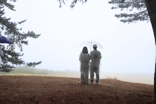 マッチングの証としてふたりで鳴らす「希望の鐘」までの道のりで、会話を弾ませながら歩く男女の姿が印象的でした。