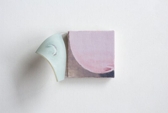 キャンバスと半透明の湾曲した樹脂板は絵画であり、空間から切り離された窓として、軽やかにある。ある限られた見方にとらわれずに、視点をずらして見つめ直すことで、それに気づく。