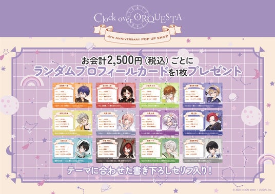 お会計2,500円(税込み)ごとに、ランダムプロフィールカード(全12種)を1枚プレゼントいたします。