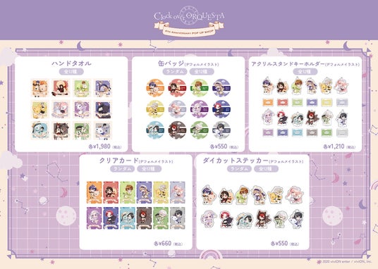 缶バッジやステッカー、アクリルスタンドなど、描き下ろしイラストの魅力を活かした新作グッズを取り揃えました。
