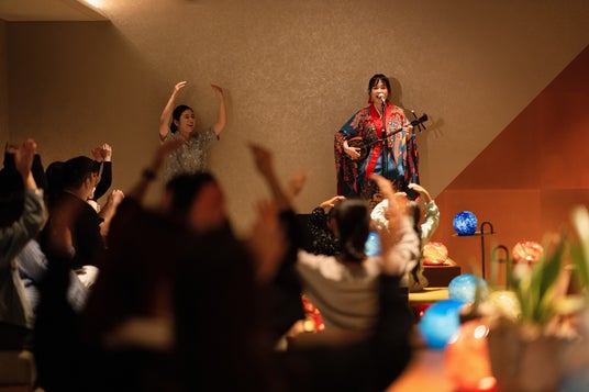 琉球王朝時代から生活の一部として親しまれてきた歌や三線。これまでの「三線ライブ」は隔日開催でしたが、この度365日・毎日開催へと進化します。さらに、琉球ガラスを灯す幻想的な空間が拡大し、ライブの会場も鮮やかに彩ります。ご近所店舗の方々を中心とした演者さんとOMOのスタッフ、その日集まったお客様全員で、歌って踊ってちむどんどん(胸がどきどきワクワク)する時間を過ごせます。