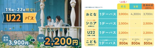 さらに今年はこどもだけでなく、18歳から22歳の皆さまを対象にした『U22パス』も販売いたします。1デーパス(通常価格4,300円)が前売りチケットに限り、2,200円の特別価格でご購入いただけます。