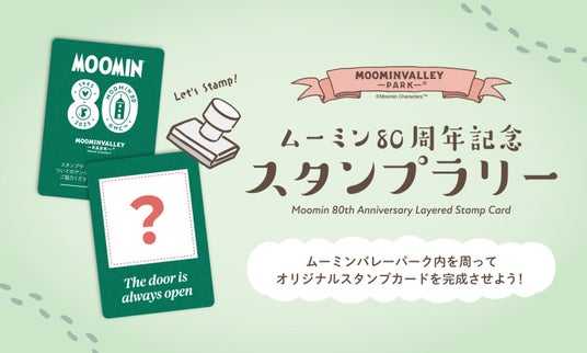 ムーミン80周年の記念ロゴがデザインされたカードを入園者全員にプレゼント!カードを持って、ムーミンバレーパーク内の6ヵ所のスポットを回ってスタンプを押そう!