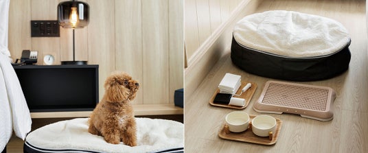 愛犬が、旅行中も元気に過ごせるよう睡眠と健康を守るための機能を詰め込んだ、Ambient Lounge Japan社のペットベッドを設置しました。世界中の愛犬家に支持され、手作業で仕上げられた究極のペットベッドです。