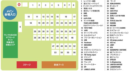 IPF/arai 4x4 lab/ウェッズ/栄光社(shur-lift)/ARB/ACC inc/エクシズルライン/エムエルジェイ/MCLIMB/OZジャパン/オートフラッグス/CAR STYLE/GANADOR/QUADRUPED CUSTOMS/KUHL&VRARVA/グッドオープンエア マイクス(神奈川トヨタ)/クリップ/クロスメンバー/群馬トヨタ RVPARK/KSファクトリー/GRガレージ京都伏見(京都トヨタ)/GMG/JAOS/SPIELER/JOINT/スーパースター/ダンロップ/TDI Tuning JAPAN/デルタフォース・クリムソン/TOYO TIRES/RTK(TOPRANKAZ)/MKW・BRUT/TRUST/TRAIL/日本グッドイヤー/4x4 Engineering/福島トヨタ/フジ・コーポレーション/ブリヂストン/FLEX/flexdream/ホットスタッフコーポレーション/エルフォード/モトレージ/YOKOHAMA/iiD design product/RAGUNA/LADDER FRAME/LANDLIC JAPAN/LIMITED-CHITOSE/RAYS/ロードハウス(KADDIS)/ワーク/ランクルBASE/TEAM LAND CRUISER/さなげアドベンチャーフィールド/富士スピードウェイ/レッツゴー4WD