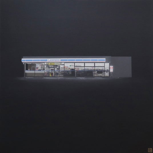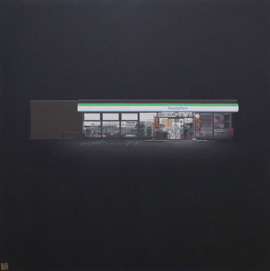 コンビニは地方都市に住んでいる私の周りにもたくさんあり、夜 ポツンと光っています。その姿をできるだけ即物的に描きました。