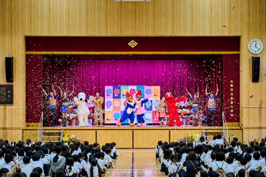 5月29日(木)には、パークの地元・大阪市此花区に位置する大阪市立島屋小学校へ出張し、小学1~6年生を対象に、“感謝”をテーマにしたユニバーサル・スタジオ・ジャパンによる特別授業を開催しました。感謝月間を根付かせ、あらゆる大切な人への“感謝”の輪を拡げる活動の一環として、地元コミュニティと連携し今回、特別授業を初めて実施。イベント当日、パーク・コンシェルジュをはじめとするパークで働くクルーたちが、体育館に集まった約620名の児童に向けて実践形式で“ありがとう”を伝え合うレッスンを行いました。感謝を伝える相手や伝え方を思い思いに描きながら、相手がうれしくなるような伝え方やコツなどを教えてもらうと、最初は少し緊張気味だった児童たちもどんどん笑顔に!また特別授業の後半には、児童たちの前にパークの仲間たちやエンターテイナーらがサプライズで登場!!大きな驚きと歓声が上がる中、“ありがとう”をテーマにしたダンスを楽しむと、会場は子どもたちの弾ける 笑顔であふれました。