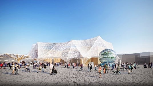 <「大阪ヘルスケアパビリオン」公式ロゴとイメージ図> 「提供:(公社)大阪パビリオン」