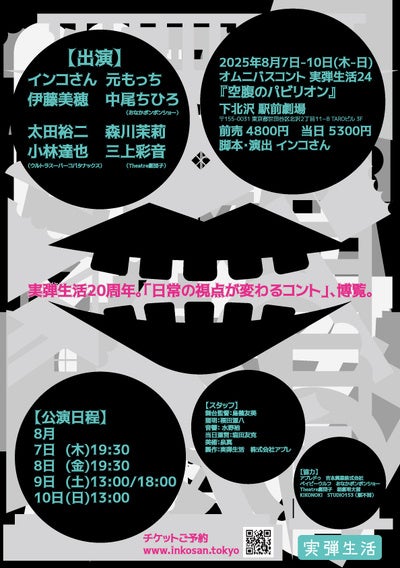 コメディアン、インコさんが主宰となったオムニバスコント公演。形式はソロユニットだが、欠かせないレギュラー陣が「実弾メンバー」と呼ばれている。