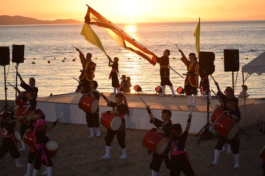 「さざ波フェスタ」は熊本県天草市の四郎ヶ浜ビーチで開催されるイベントです。海上から打ち上げられる約1,000発の花火を砂浜に座って間近で楽しむことができるほか、サンドアート展示や飲食ブース、ステージパフォーマンスなど様々な催しがあり、一日中楽しめるビーチイベントとして県内外から多くの来場者が足を運びます。