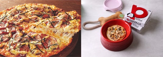 愛犬も一緒に楽しく食べられる商品を作っている「コミフデリ」とのコラボ商品を提供!人気ピザのテリヤキチキンをコミフ風にアレンジしました。箱もわんちゃんサイズに再現!さらに、通常の店舗でも提供、配達している「テリヤキチキン」も登場します。親子ピザ風に並べて、愛犬と一緒に写真撮影をお楽しみください。