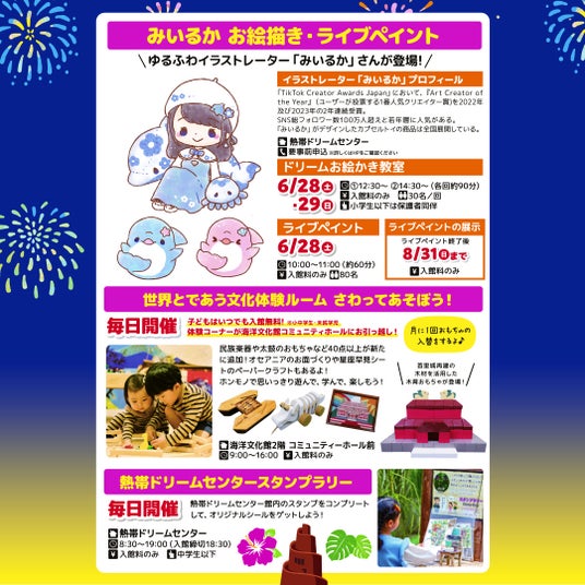 熱帯ドリームセンターにてお絵描き教室やライブペイントなどを開催(要事前申込)