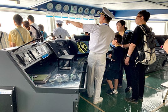 全長約200mの巨大な自動車船の船内見学会では、自動車の積み込みの様子や、船の操縦室であるブリッジ(船橋)など普段は見られない所を特別に見学いただけます。また見学中、疑問や気になることがございましたら、お気軽にお近くの船員にご質問いただけます。いつも皆さんが乗っている自動車がどのように運ばれているか、船の中でどのような人たちがどのような仕事をしているか見てみませんか?