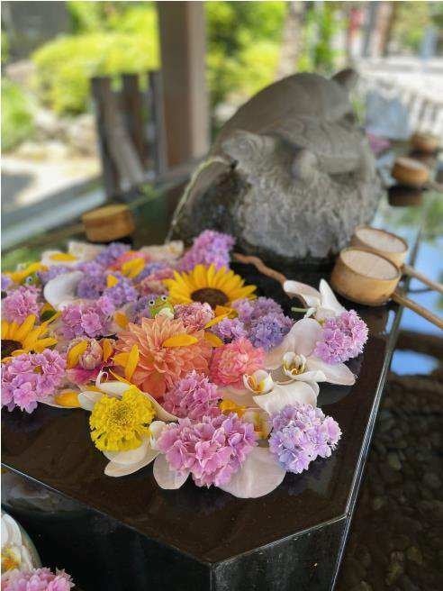 ※花手水:手や口を清めるために設けられた神社などの手水舎(ちょうずしゃ)や公共施設などに置