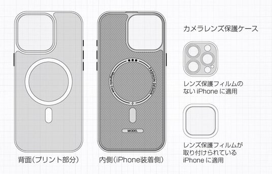素材:TPU(熱可塑性ポリウレタン)カメラカバー:取り外し可能、2種あり(レンズ保護フィルム有無に対応)