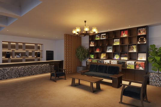 1階のロビーにはワインバーを新設します。熱川温泉の最盛期に流れていた当時の楽曲を中心に、レコードコレクションをラインナップ。